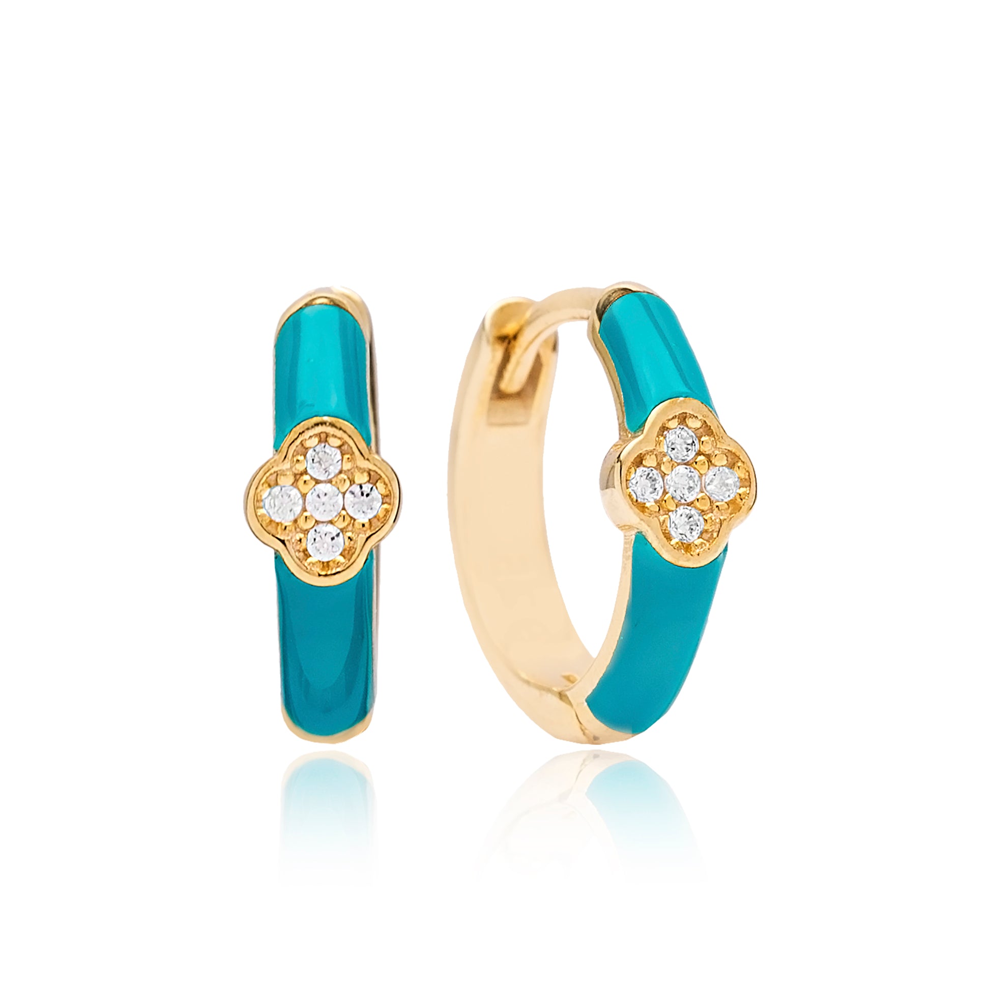 - Vibrant Design: The earrings showcase a beautiful turquoise enamel that adds a pop of color, complemented by gold-plated detailing for a luxurious finish.